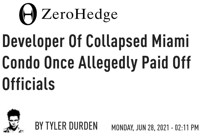 This is where I don’t have the conspiratorial bent on this event even though there are red flags such as it happened just prior to the UFO report release and the end of the Arizona audit. Also, it happened close to a Trump property. The reason I think its plausible that this was a random event is there were structural problems and there may have been liquefication of the soil. In other words this was going to happen at some point but it was strange timing and an odd location…