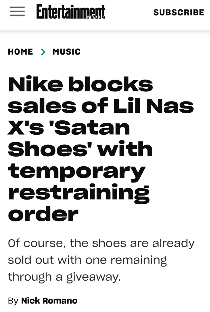 This is why people don’t like corporations. Many times the right hand doesn’t know what the left hand is doing and this is how the devil likes it. However, I cannot imagine overall sales at Nike are going to accelerate that much just because they sold 665 of these monstrosities. Plus the demons in the music business ought to have a blow back if they continue to support the devil in this case, literally…